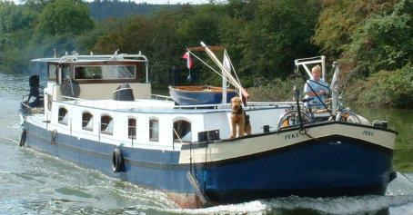 This my barge “PEKE”, she is 22 metres x4.05 x 1.2m. Originally a sailing barge built in 1917 now powered by a130 hp Perkins.
